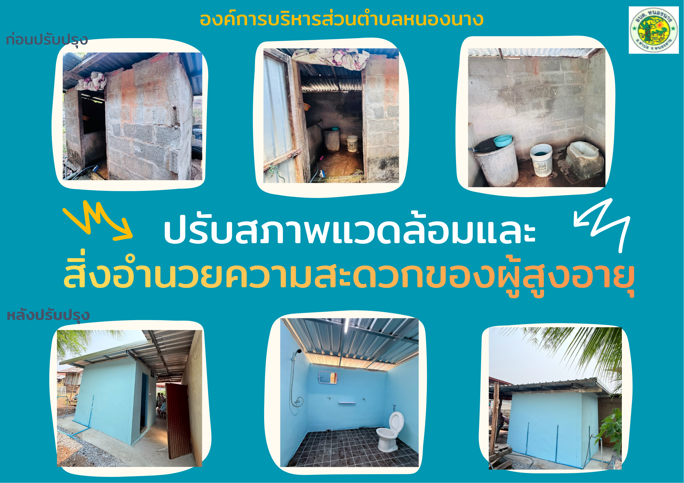 องค์การบริหารส่วนตำบลหนองนาง ร่วมกับ สำนักงานพัฒนาสังคมและความมั่นคงของมนุษย์จังหวัดหนองคาย และผู้บริหารโรงเรียนบ้านนาน้ำพาย ผู้นำชุมชนในพื้นที่ ได้ดำเนินการปรับปรุงห้องน้ำใหม่ ให้แก่ นางสลับ ลวงงาม หมู่ที่ 9 ตำบลหนองนาง อำเภอท่าบ่อ จังหวัดหนองคาย ภายใต้โครงการปรับสภาพแวดล้อมและสิ่งอำนวยความสะดวกของผู้สูงอายุให้เหมาะสมและปลอดภัย ประจำปีงบประมาณ พ.ศ. 2569 ทำให้เกิดผลสำเร็จและมีส่วนร่วมในการขับเคลื่อนโครงการให้เกิดผลอย่างเป็นรูปธรรม อันนำไปสู่การยกระดับคุณภาพชีวิตของประชาชนในชุมชนให้ดียิ่งขึ้น